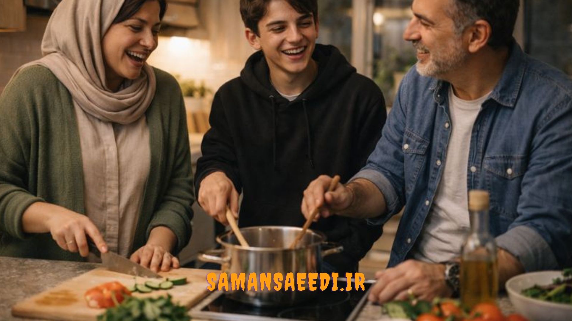 ارتباط موثر لزوماً در جلسات رسمی شکل نمی‌گیرد؛ بلکه در لحظات کوچک روزمره پرورش می‌یابد. هنگام رانندگی، بدون فشار برای صحبت کردن، فضایی آرام برای گفت‌وگو فراهم کنید. پرسش‌های باز بپرسید: به‌جای «مدرسه خوب بود؟» بگویید «امروز چه چیزی تو را بیشتر تحت تأثیر قرار داد؟». این سؤالات دعوت به تفکر می‌کنند، نه پاسخ کوتاه. هنگام غذاخوری، گوشی‌ها را کنار بگذارید و داستان‌های کودکی خود را بازگو کنید؛ این کار نشان می‌دهد که شما هم انسان بوده‌اید و اشتباه کرده‌اید. تحقیقات دانشگاه شهید بهشتی حاکی از آن است که خانواده‌هایی که روزانه حداقل بیست دقیقه بدون وسایل الکترونیکی با هم گفت‌وگو می‌کنند، ارتباط والدین با نوجوانان در آن‌ها پایدارتر است. یادتان باشد کیفیت گفت‌وگو مهم‌تر از تعداد آن است؛ گاهی یک مکالمه صمیمیِ ده‌دقیقه‌ای، بسیار ارزشمندتر از یک ساعت پرسش‌های پی‌درپی است.